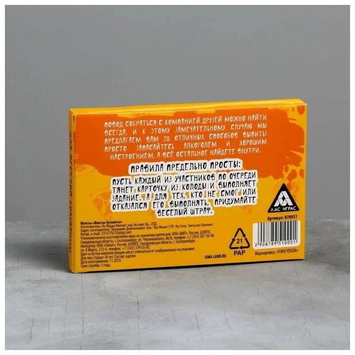 Купить игра для компании "фанты буханты" 20 карт от 100 руб. с доставкой до пункта выдачи в Белгороде. Интернет магазин ДекаМаркет. Оплата при получении.
